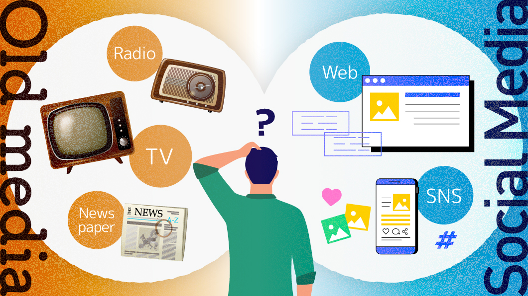 2025年流行語トップ10に選出された「オールドメディア」。「オールドメディアは偏向情報にあふれている!」などという批判的に使われたりSNSなどのソーシャルメディアを指す「ニューメディア」と対比されたりすることが多いようです。
